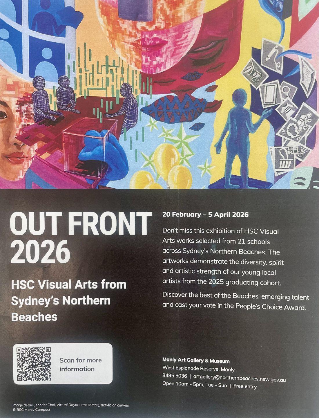 Congratulations to Millie Herrmann, graduating student from 2025 on her HSC Visual Art works being selected for the ‘Out Front’ exhibition at Manly Art Gallery which opens on Friday.