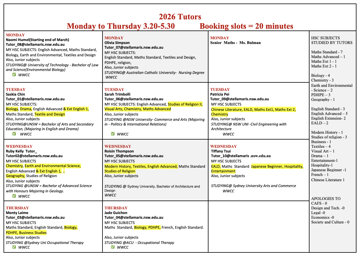 The Uniform Shop is open Tuesdays to Thursdays from 8:00am to 4:30pm during term and can be emailed on uniform_books@stellamaris.nsw.edu.au
