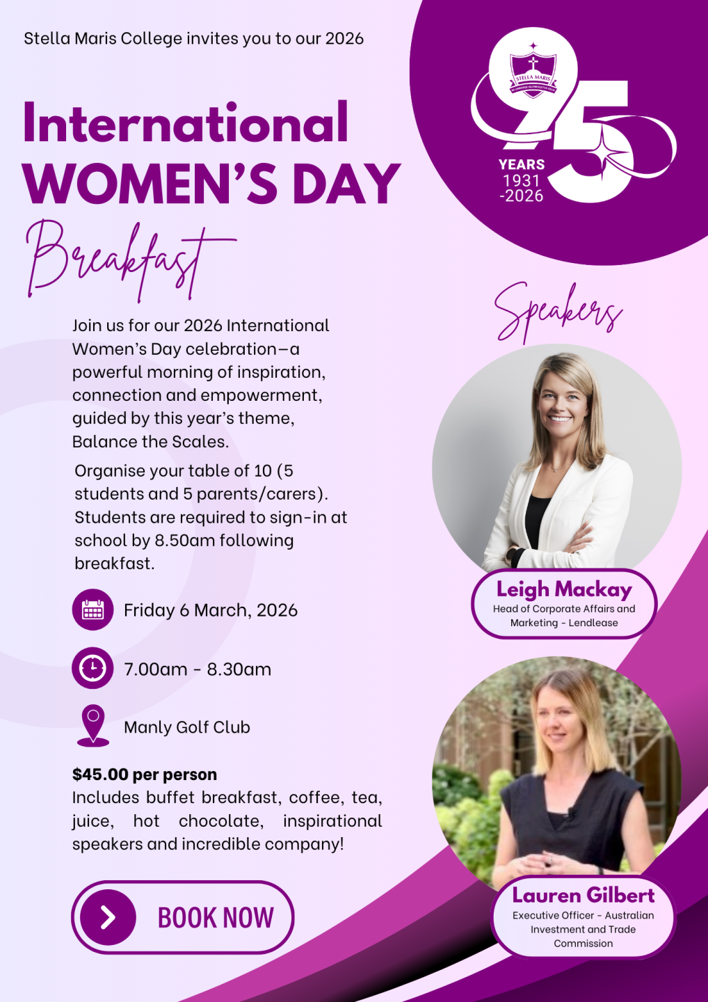 We hope you can join us on Friday 6 March, alongside your daughters, to celebrate International Women’s Day.