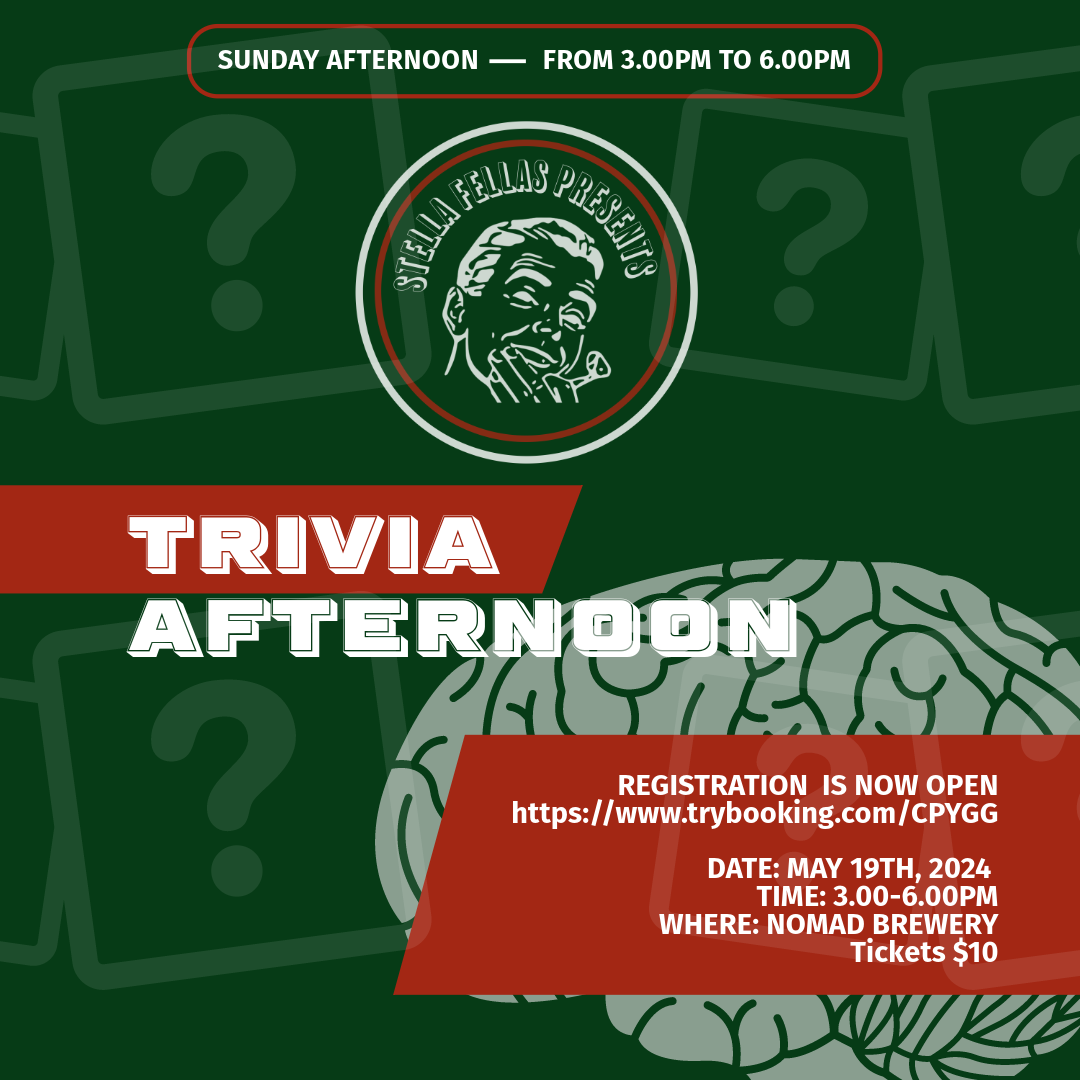 Join the crew at Nomad Brewery in Brookvale on Sunday 19 May, 2024, for an unforgettable trivia showdown from 3.00pm to 6.00pm.
