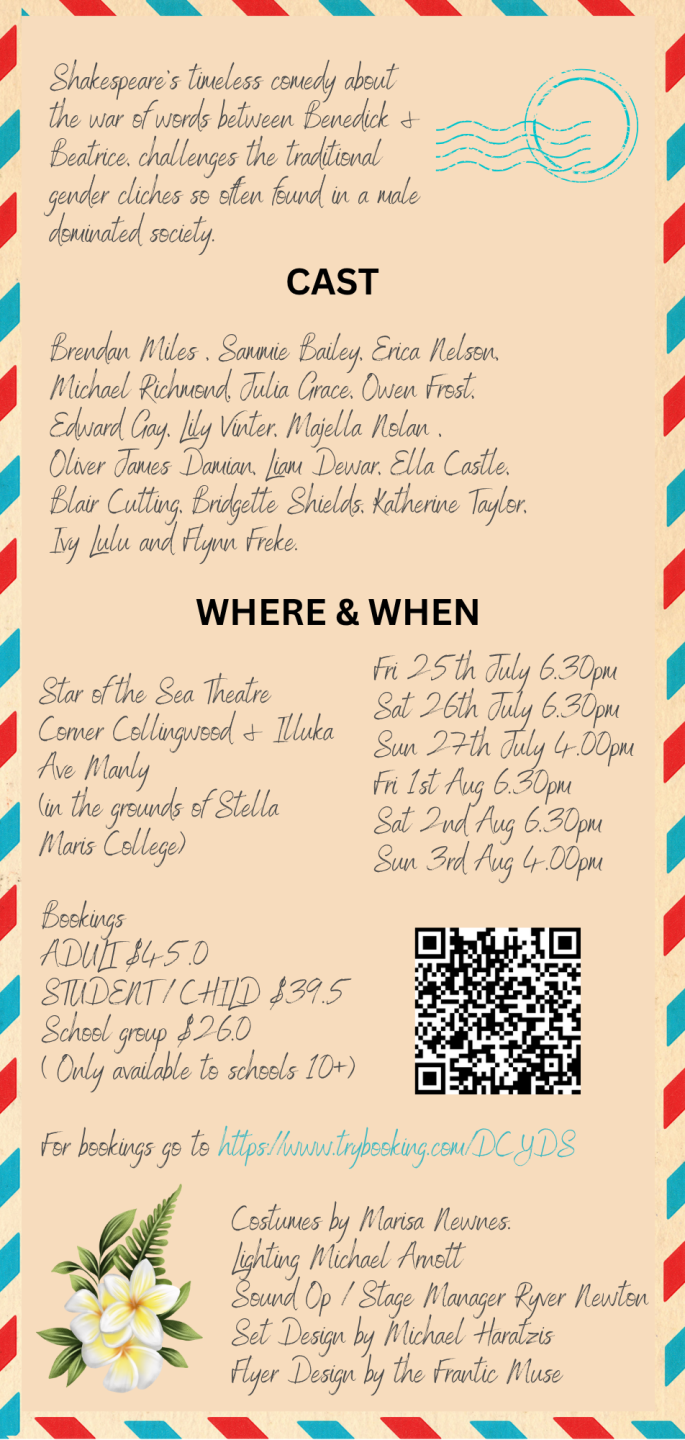 Shakespeare’s timeless comedy about the war of words between Benedick & Beatrice, challenges the traditional gender cliches so often found in a male dominated society.