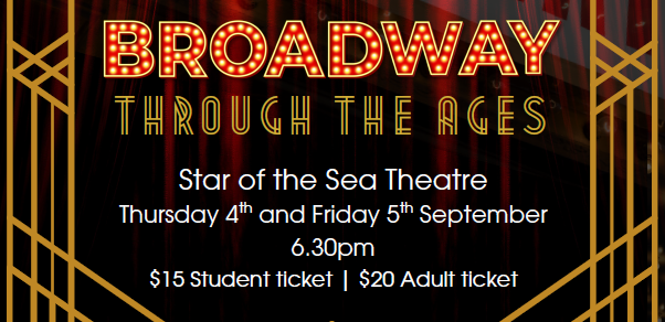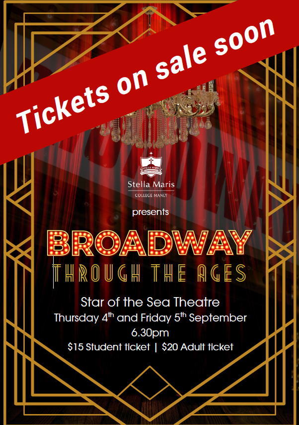 This September, Stella Maris Performing Arts will be debuting an exciting new Cabaret evening, ‘Broadway Through the Ages’. The show draws on an eclectic mix of dramatic, dance and musical material from Chicago, Moulin Rouge, The Phantom of the Opera, Burlesque, Wicked, Beetlejuice, Dreamgirls, High School Musical, In the Heights, Les Misérables and Hairspray. The performances will take place at 6:30pm on Thursday 4 September and Friday 5 September. First round tickets will go on sale in Week 3 starting with exclusive access to the families of performers involved. Tickets will be $15 (student) and $20 (adult). Watch this space for details of pre-show and intermission food and beverage hospitality.