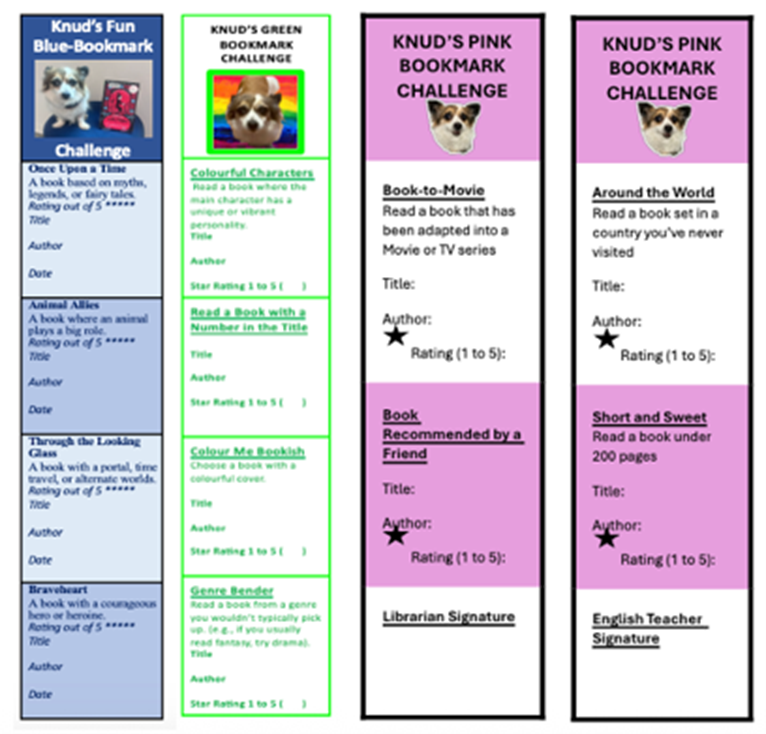 Students track their reading progress on a special bookmark throughout the term. Once completed, the bookmark is signed by both their English teacher and a member of the Library Staff. Every student who completes the challenge earns a colourful Knud sticker as a reward!