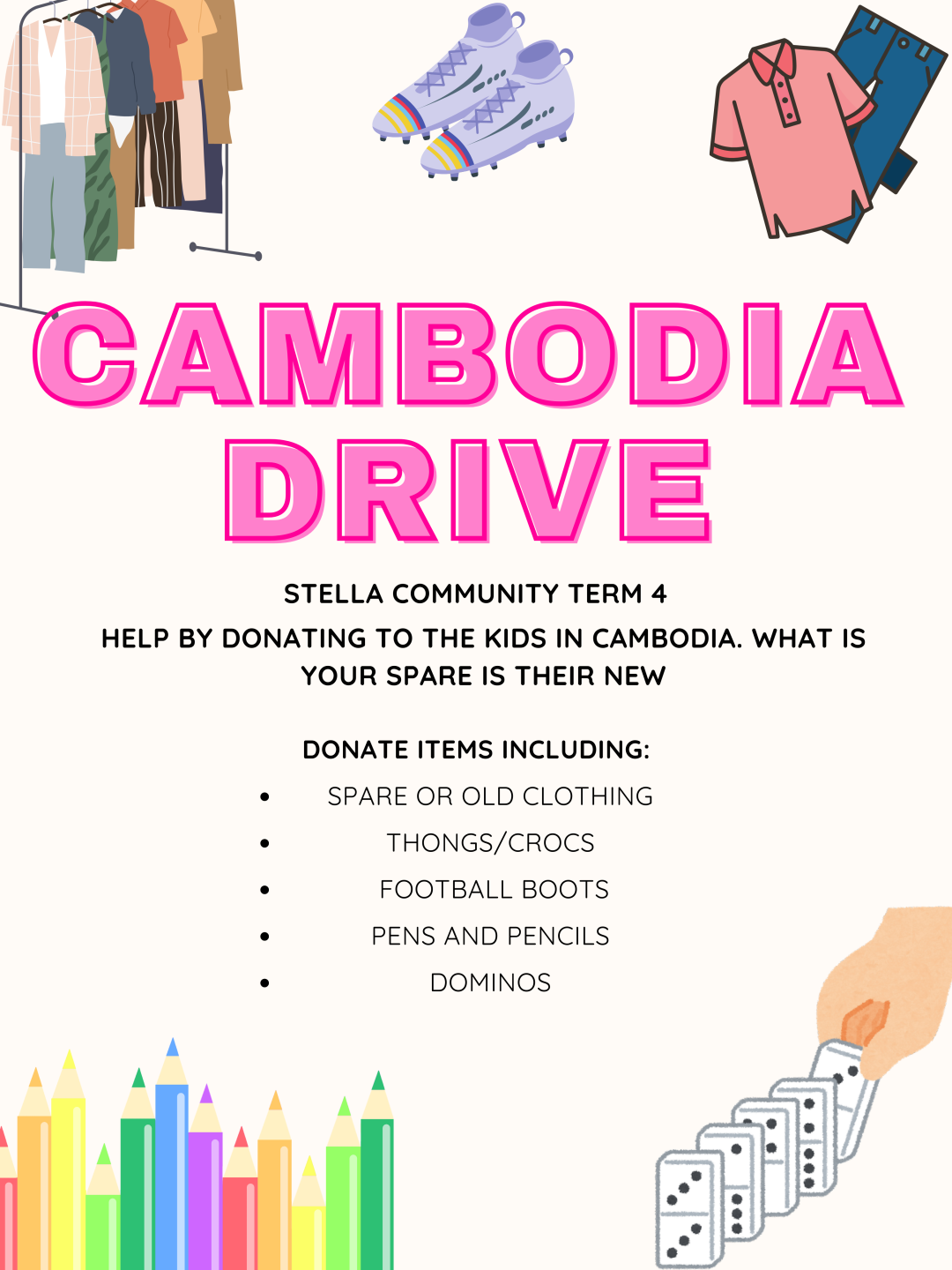 Keep those items coming in for the Cambodia Drive.